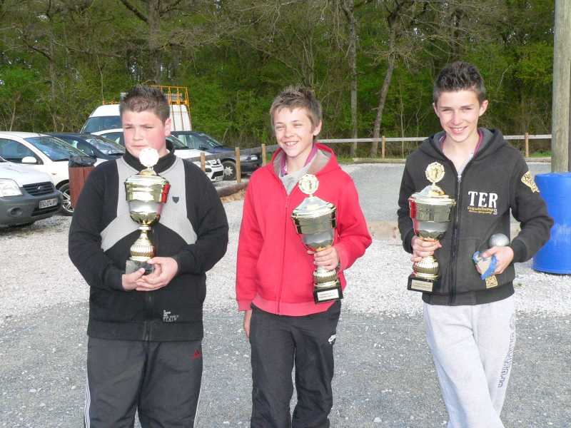 En catégorie juniors, après un parcours sans faute en partie de poules, Audrey ALBAR, Roman VAYSSETTES et Hugo BASCOUL sont stoppés en ¼ de finales. L’équipe Sébastien FIRMIN, Vaïk KOUIDER et Marie VIAULES et la triplette Louis AMARAL, Damien DELGA et Anthony CALLA atteignent toutes les deux les ½ finales et sont qualifiées pour le championnat de ligue Midi-Pyrénées à CAHORS où ils pourront décrocher une place qualificative pour le championnat du Tarn.